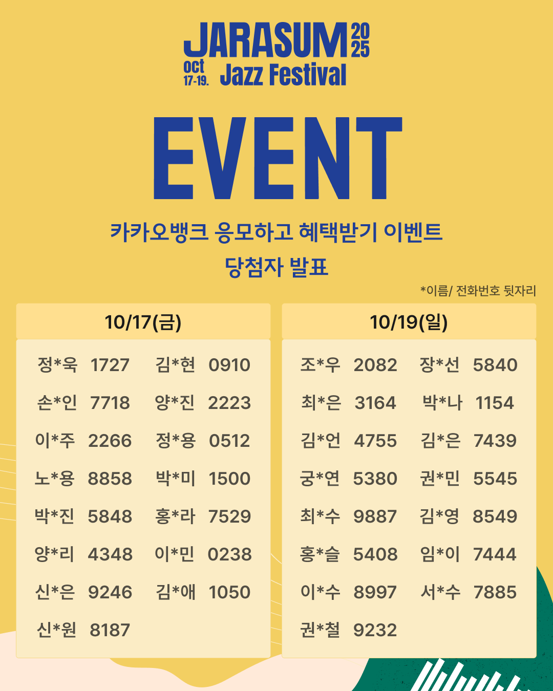 자라섬재즈페스티벌 입장권 이벤트 당첨자분들을 공개합니다!